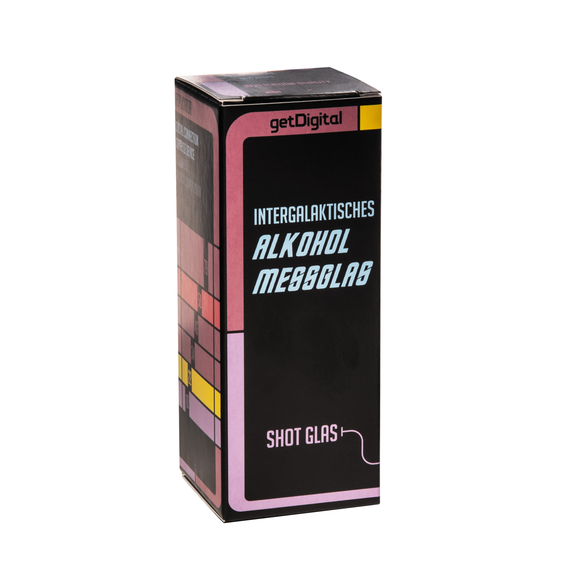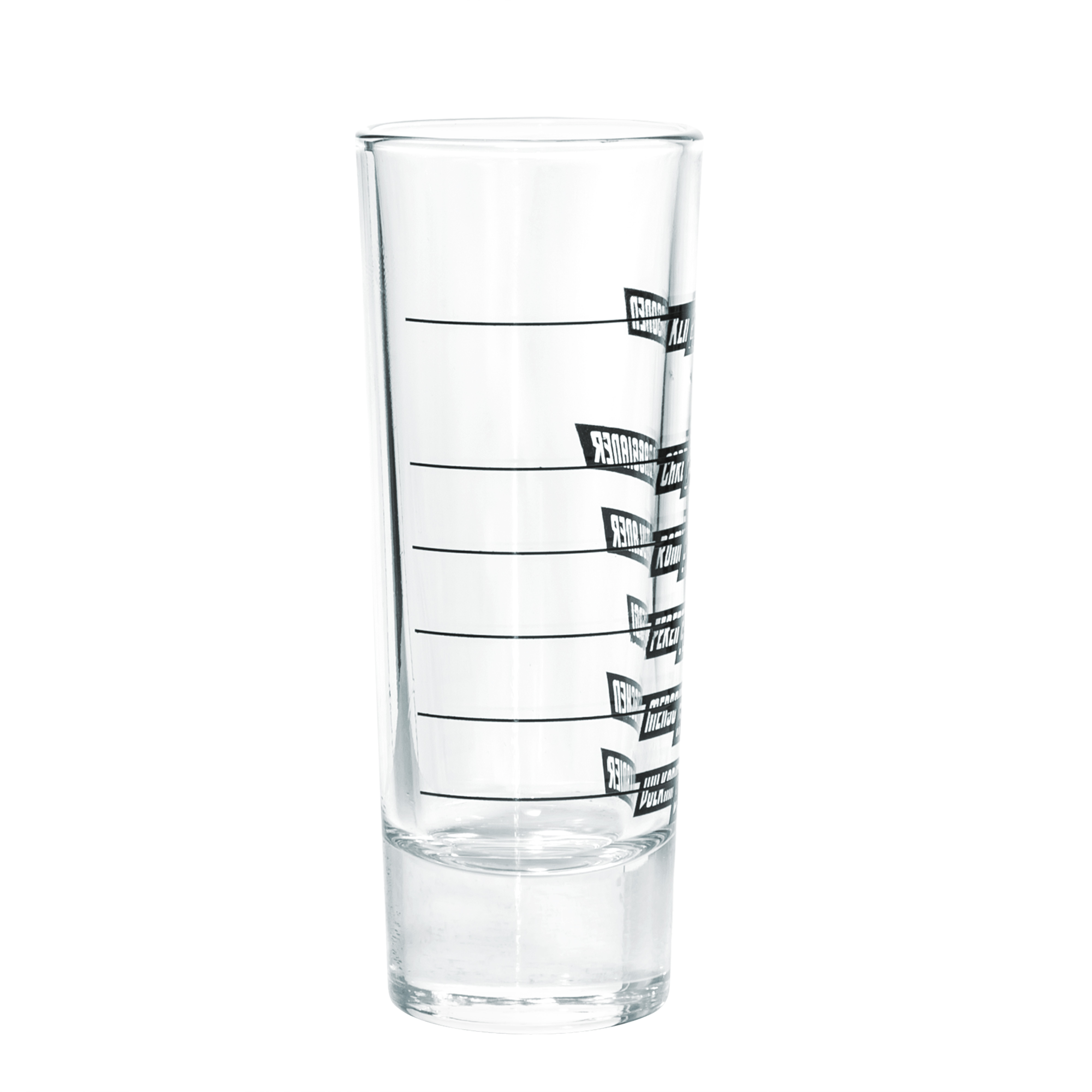 This intergalactic shot measuring glass indicates with a scale how much alcohol known species from a certain sci-fi franchise can handle. The glass has a capacity of around 43 ml and is dishwasher safe. Optionally available individually or in a double pack. Note that the species names are written on the glass in German language.